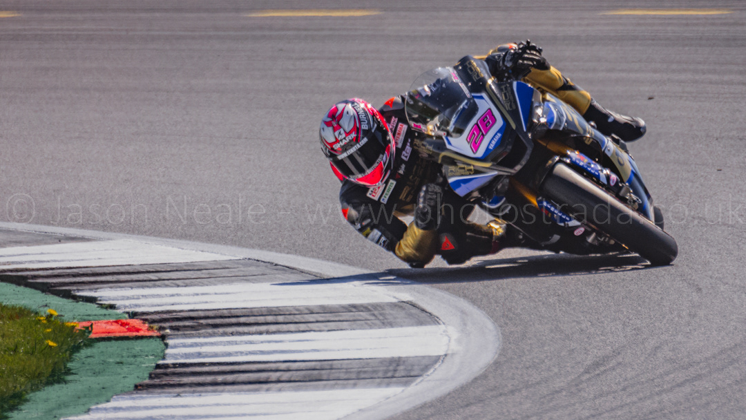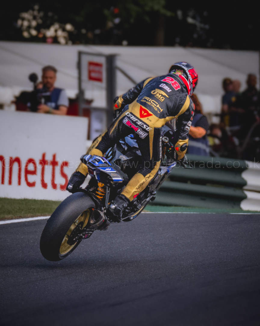 Bradley Ray, from Lydd in Kent here cranked right over on the Rich Energy OMG Racing Yamaha R1 at Oulton Park. Leading the field by a distance to win race 1. He went on to win race 2 and finish 3rd in race 3 to move up to lead the championship.